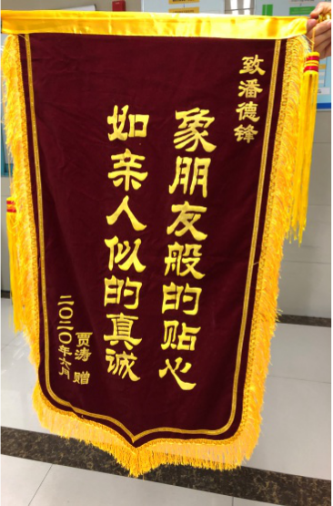 2020-06-15锦旗赠心内科27病区潘德锋 象朋友般的贴心 如亲人似的真诚