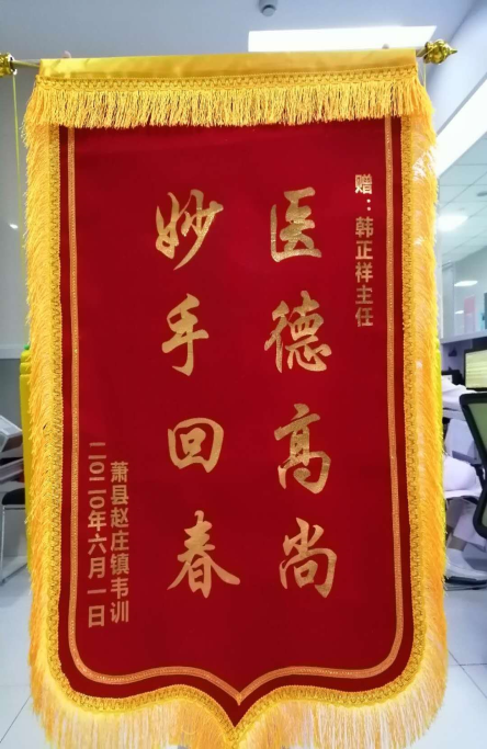 患者锦旗赠东院肿瘤科二病区韩正祥主任