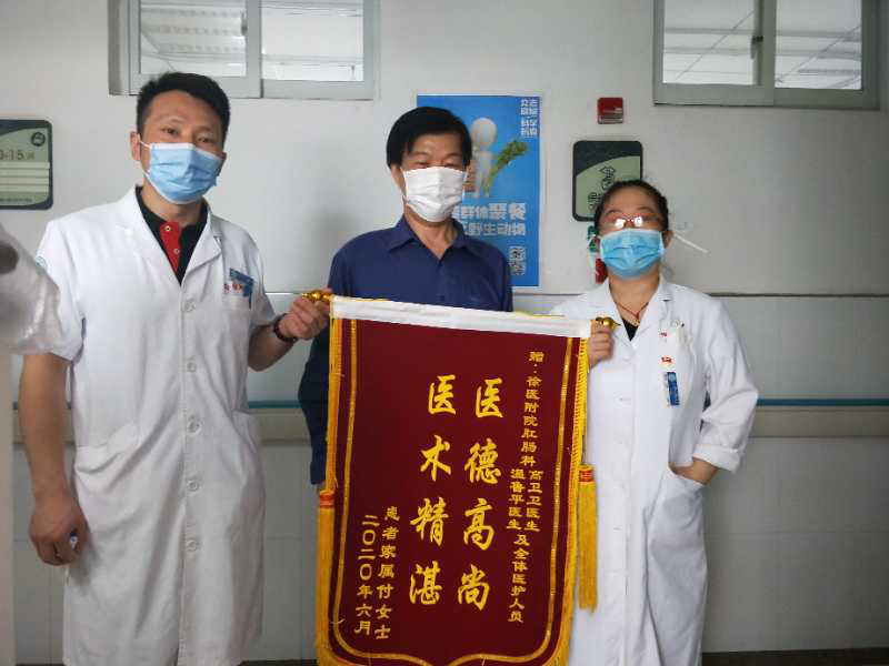 患者锦旗赠徐医附院肛肠科64病区高卫卫医生、温鲁平医生及全体医护人员 2020-07-03 08:41:03行风建设 2020-06-19锦旗赠徐医附院肛肠科64病区高卫卫医生、温鲁平医生及全体医护人员: 医德高尚 医术精湛 患者家属付女士 二0二0年六月