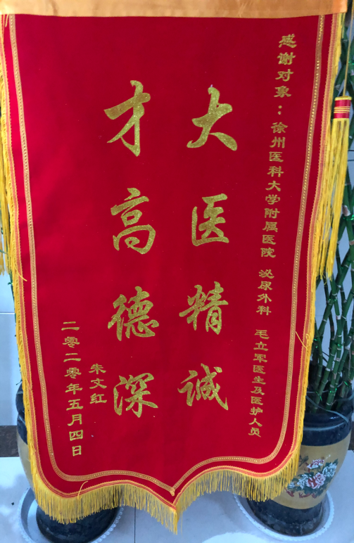患者锦旗赠徐州医科大学附属医院泌尿外科15病区毛立军医生及医护人员 2020-07-03 08:55:56行风建设 2020-06-24锦旗赠徐州医科大学附属医院泌尿外科15病区毛立军医生及医护人员:大医精诚 才高德深 朱文红二零二零年五月四日