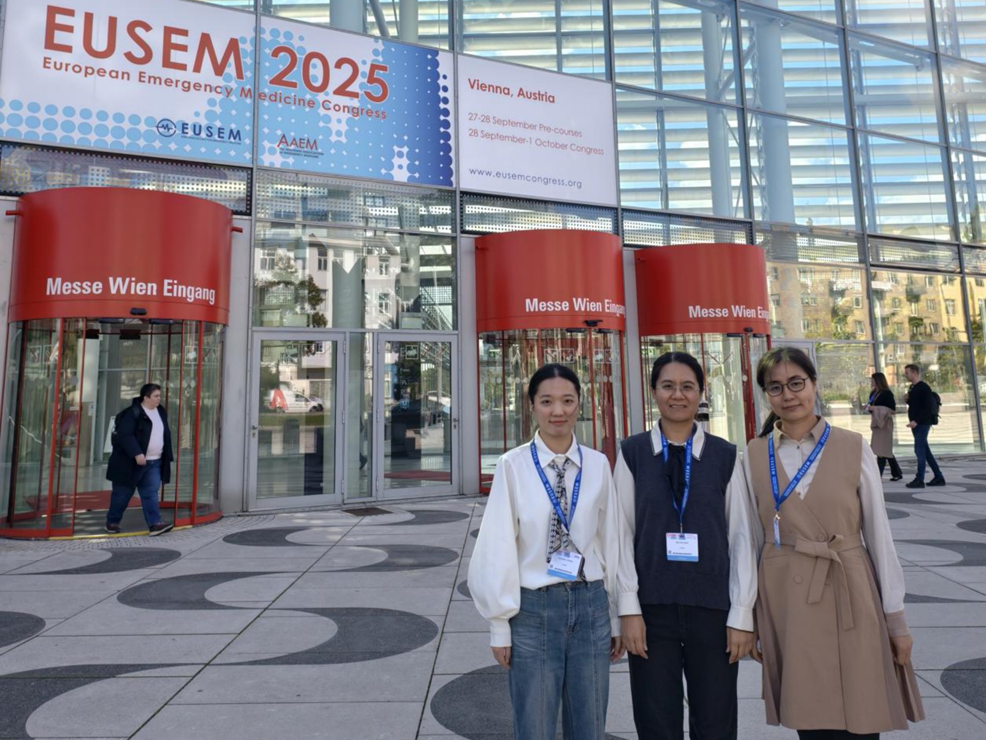 当地时间2025年9月28日至10月1日,全球急诊医学领域的顶级学术盛会——欧洲急诊医学大会(EUSEM 2025)在维也纳召开。本届大会吸引了来自全球90多个国家、超过3000名专家学者参会。大会设立了丰富多样的学术环节,包括前沿专题报告、实践工作坊、口头报告及壁报交流等,共同探讨急诊医学领域的最新研究进展、临床实践创新与未来发展方向。我院急诊医学科派出吕兰欣副教授、庄伟副教授及在读研究生张小伟组成的学术交流团队参会。团队通过一场口头报告和两项壁报展示,向世界展示了来自徐州医科大学附属医院急诊医学科的创新研究与临床探索。团队带来的研究成果覆盖了从临床治疗策略优化到神经系统损伤创新机制探索的多个前沿领域,引发了与会同行的兴趣与热烈讨论。