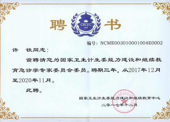 我院许铁主任被聘为国家卫生计生委能力建设和继续教育急诊学专家委员会委员