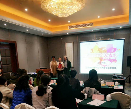 徐州市护理学会手术室专委会负责本次大赛的前期组织和筹备,本着优中选优的原则,于2017年10月13日举办了《手术室护理实践指南》徐州地区演讲比赛,市县17家二、三级医院的28名选手踊跃参赛,项晗、焦同彤两名选手脱颖而出,以并列第一的优异成绩,晋级苏北片区演讲大赛。