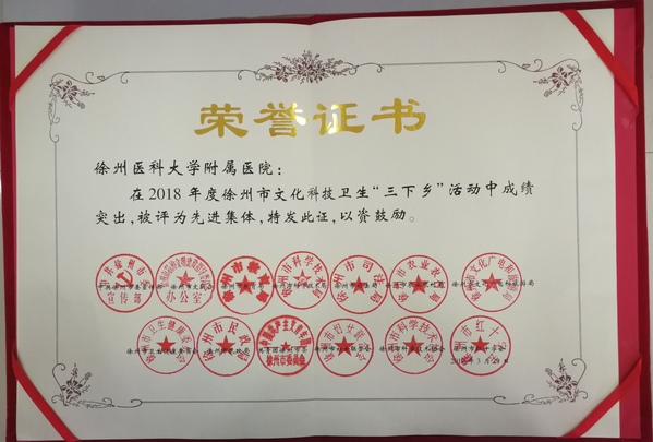 日前,我院在2018年度徐州市文化科技卫生“三下乡”活动中表现突出,被评为先进集体。